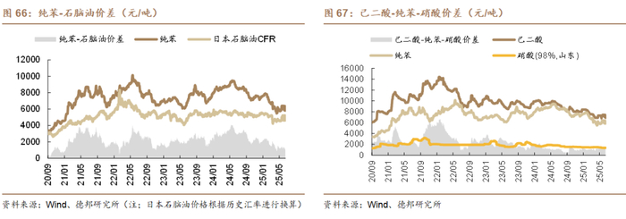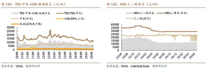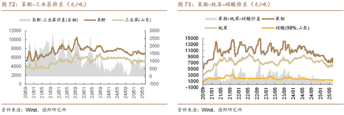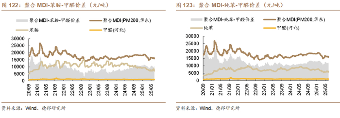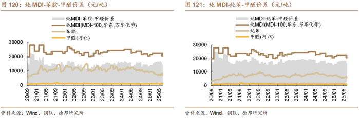 苯胺:本周苯胺价格为7300元/吨,环比-6.4%。周初受纯苯走弱及需求低迷双重打压,市场看空情绪加剧,业者普遍心态悲观,观望氛围浓厚,市场整体需求有限,下游需求持续清淡抑制成交,工厂出货阻力明显,为缓解压力被迫大幅让利,苯胺市场弱势下滑;而后苯胺价格逼近成本线,下游接受度好转,市场买气情况有所转好,工厂订单增加且现货供应趋紧,市场心态受到提振,苯胺市场反弹上行,供应方面:兰州某工厂 1 套 7 万吨苯胺装置处于停车状态;东营某企业 2 套 3 万吨装置于 2025年 5 月 6 日停车检修,目前装置已重启。需求方面:本周国内聚合 MDI 市场跌后反弹。
