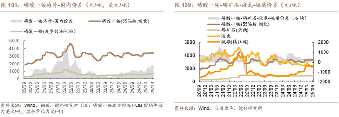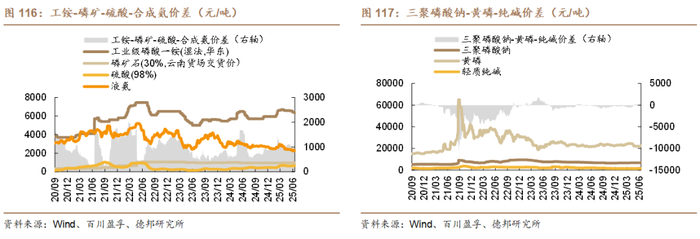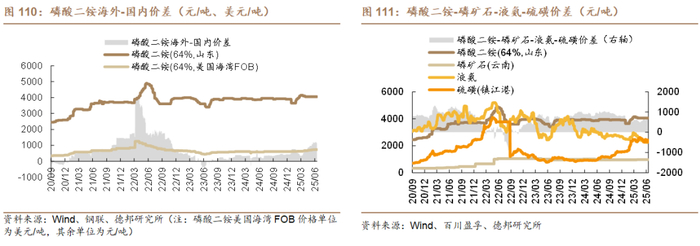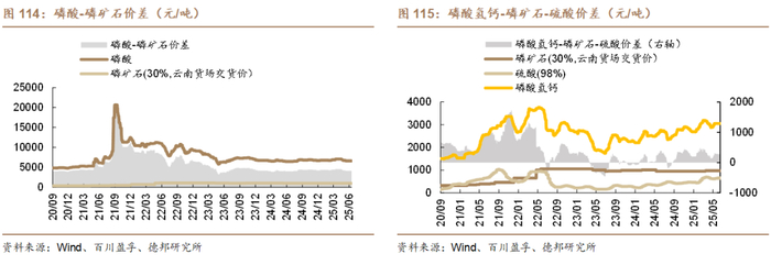 磷矿供给或仍趋紧,磷肥出口有望改善。磷矿:由于磷矿石资源供给刚性,新建产能投放周期较长且存在延期,磷矿石维持供给偏紧格局,磷矿石尤其是高品位磷矿价格高企。根据百川盈孚,自2025年3月24日起至7月11日,我国磷矿石(30%品位)价格维持1020元/吨。短期看,供给端北方企业尚未全面提产,未来环保督察或影响生产。需求端磷肥待发订单充足,整体开工在五成左右,需求整体向好。我们认为磷矿景气有望延续。磷肥:根据百川盈孚,截至7月11日,我国磷酸一铵(55%)/磷酸二铵(64%)价格分别为3303/3536元/吨,环比上周分别持平/+0.28%,价格维持稳定。磷酸一铵周度库存环比向下,截至7月11日,磷酸一铵库存为29.6万吨,环比-1.37%。国内需求端下游秋季备肥即将启动。海外出口端2025年磷肥出口分阶段进行,若未来二阶段出口有望开启,出口端有望迎来边际改善,看好磷肥阶段性景气提振。建议关注:芭田股份、云天化、兴发集团、川恒股份、川发龙蟒、川金诺。