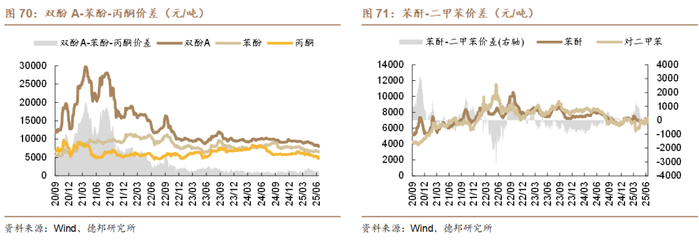 本周化工品价差跌幅前十名为:丙烯酸丁酯-丙烯酸-正丁醇价差(-558元/吨)、MTBE气分醚化法价差(-113元/吨)、二甲醚-甲醇价差(-156元/吨)、R410a-R125-R32价差(-250元/吨)、三聚磷酸钠-黄磷-纯碱价差(-116元/吨)、复合肥价差(-9元/吨)、苯酐-二甲苯价差(-60元/吨)、三聚氰胺-尿素价差(-180元/吨)、PTA-PX价差(-174元/吨)、苯酐-工业萘价差(-240元/吨)。