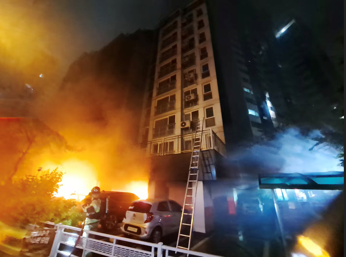报道称,起火公寓共10层,1层为用作停车场的架空层,2层到10层为居住区,共住有45户。消防部门接到火警后,于下午9时11分许赶赴现场灭火,在1小时20分钟后的下午10时32分许完全扑灭火势。