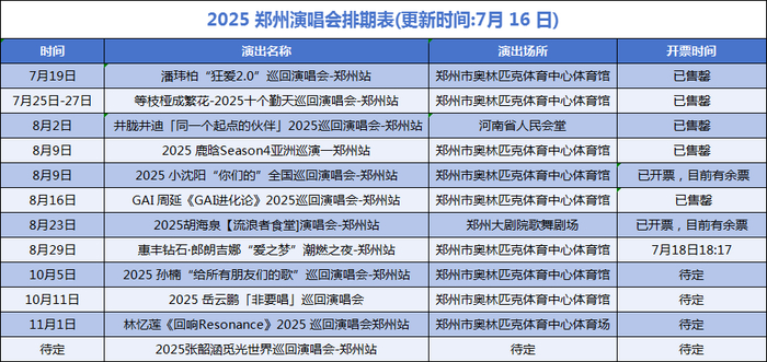●速看!2025郑州演唱会最新排期表出炉,鹿晗、孙楠、十个勤天、岳云鹏→