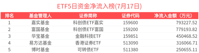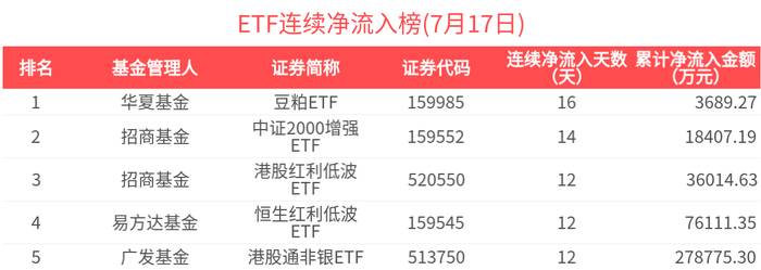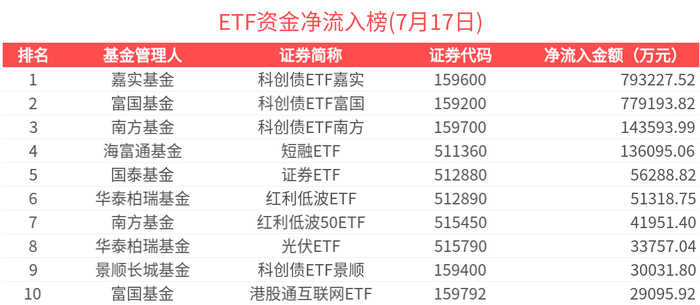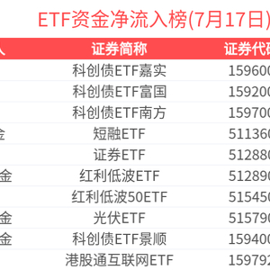 ETF资金榜 | 豆粕ETF(159985)资金加速流入,科创债相关ETF集体“吸金”-20250717