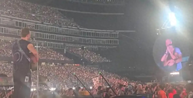 当地时间7月16日,Coldplay波士頓演唱会上意外拍到了一对非常不愿上镜头情侣。他们看到自己被直播到大屏幕上时吓得躲了起来,主唱ChrisMartin 也开玩笑地问他们是不是在出轨。
