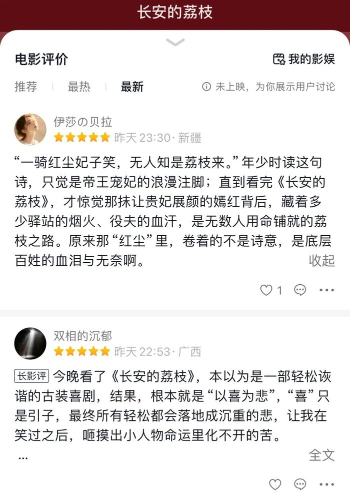 提档后,《长安的荔枝》的点映口碑持续释放。“最终所有轻松都会落成沉重的悲,让我在笑过后,咂摸出小人物命运里化不开的苦。”有观众在《长安的荔枝》抖音评论区如此写道。