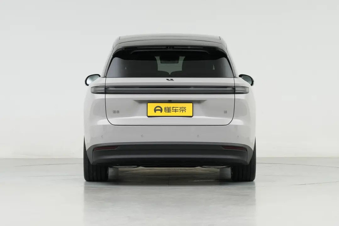 车身侧面,新车采用双色车身和纯平玻璃面进行设计,车顶线条呈现溜背趋势,搭配低风阻轮辋、隐藏式车门把手等设计元素,看起来颇具运动气息。车身颜色方面,新车提供白色珍珠漆、银色金属漆、黑色金属漆、小象灰特别版冷光漆、天空蓝特别冷光漆共计5种外观颜色选择,同时新车还将提供双色车身设计。尺寸方面,理想i8长宽高分别为5085/1960/1740mm,轴距为3050mm,定位家庭六座中大型纯电SUV。车尾部分,新车尾灯配备直线式贯穿尾灯带,并带有后扰流板,视觉效果简洁但不失层次感,尾门右下角带有“i8”字样标识表明车辆身份。