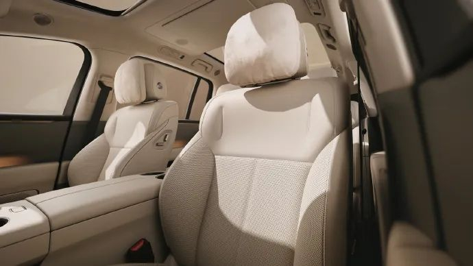 内饰部分,新车采用理想家族式设计语言,车内提供白色、灰棕色和橙黄色3种内饰配色供消费者选择,看起来非常时尚。配置方面,新车配备大尺寸中控屏和副驾娱乐屏组成的一体式连屏,中控台T字区域配备双手机无线充电、双杯架以及储物槽等。此外,新车还配备四辐式多功能方向盘,配备方向盘交互屏等功能。座椅布局方面,新车采用2+2+2的6座布局,后排配备娱乐屏幕以及小桌板,其中第三排座椅还具有加热功能。