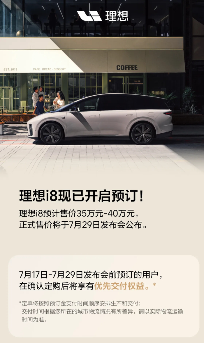 35-40万!理想i8正式预订