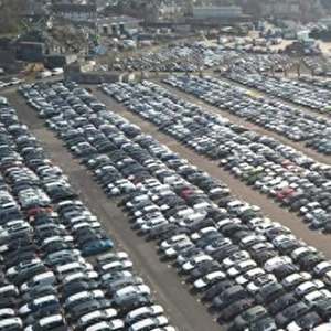 新车停放在德国的一个物流中心里等待出口。 视频截图