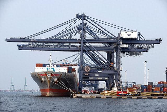 当地时间2025年7月16日,印度尼西亚雅加达,由印尼国有企业PT Pelindo运营的丹戎不碌港,集装箱船正在卸货。视觉中国 图