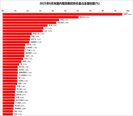 图:2025年6月末中国期货期权市场各品种的持仓量占比
