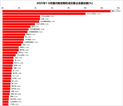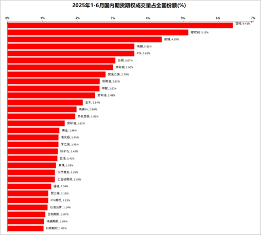 图:2025年上半年中国期货期权市场各品种的成交量占比