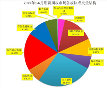 图:2025年上半年我国期货期权市场各板块成交量结构