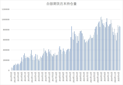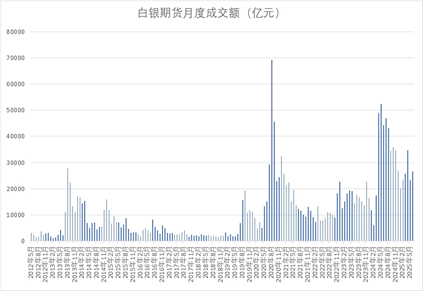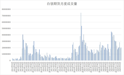 今年上半年白银期货成交量为1.25亿手,同比下降24.23%,白银期货成交额为15.37万亿元,同比下降15%,6月末白银期货持仓量86.08万手,同比下降7.2%。相比2024年,白银期货成交与持仓规模均有所下滑,但仍是保持交投十分活跃。