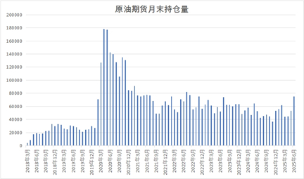图:2018-2025年上期国际能源原油期货月末持仓量