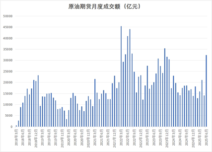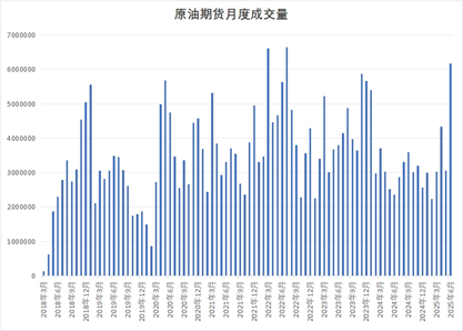 今年上半年原油期货成交量为2183.83万手,同比增长9.3%,原油期货成交额为11.44万亿元,同比下降4.8%,6月末原油期货持仓量7.49万手,同比大增42.2%。相比2024年,原油期货成交量、持仓量均大幅增长。