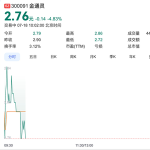 7月18日,金通灵科技集团股份有限公司(股票代码:300091)股价开盘大跌,截至发稿,公司股价跌至2.76元,较前一交易日收盘价下跌4.83%,成交量达44.13万手,成交额1.23亿元,总市值进一步缩水至41.1亿元。
