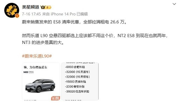 清库存!2024款蔚来ES8租电价仅26.6万 新款三季度发
