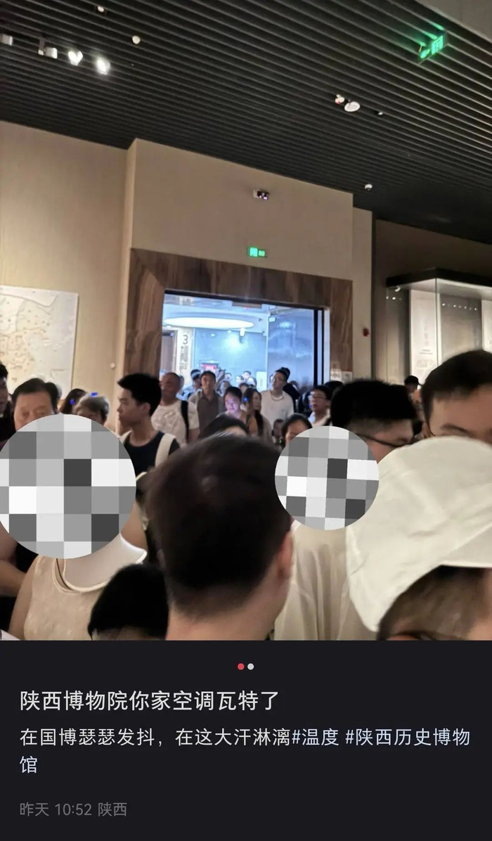 与气温同样火热的,还有大家暑期出游的热情。然而,多名网友在网上吐槽,称“陕西历史博物馆、秦始皇兵马俑博物馆等场所室内温度过高,感觉像进了蒸笼,严重影响体验感。”