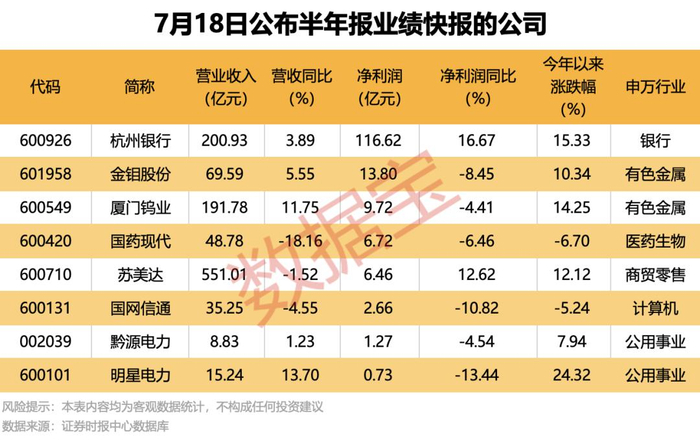 8家公布半年报业绩快报的公司中,苏美达营业收入金额居首,超551亿元;杭州银行净利润规模居首,达116.62亿元,同比增长16.67%。