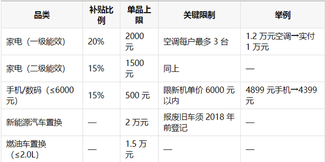 二、三大品类补贴标准速览