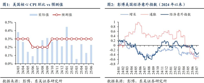 核心观点:2月特朗普关税落地以来,美国核心通胀反而连续5个月不及预期。我们认为造成这一结果的原因有:美国贸易商进口与库存周期前置,墨西哥商品进口规模增大且对美持续输入通缩,对关税敏感的核心商品在CPI中权重较小,以及关税给服务部门和美国经济总需求带来负面影响。向前看,我们倾向于未来一个季度美国CPI环比增长中枢更容易不及市场预期,但关税对通胀影响的不确定性、关税本身的不确定性以及鲍威尔对货币政策独立性的诉求意味着,当前市场预期的25H2美联储的2次降息难以实现,降息仍存在不及预期风险。