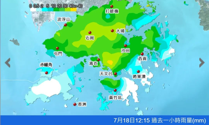 香港天文台在今日上午11时15分发出有关黄色暴雨警告信号的特别报告:暴雨警告信号现时为黄色,表示香港广泛地区已录得或预料会有每小时雨量超过30毫米的大雨,且雨势可能持续。