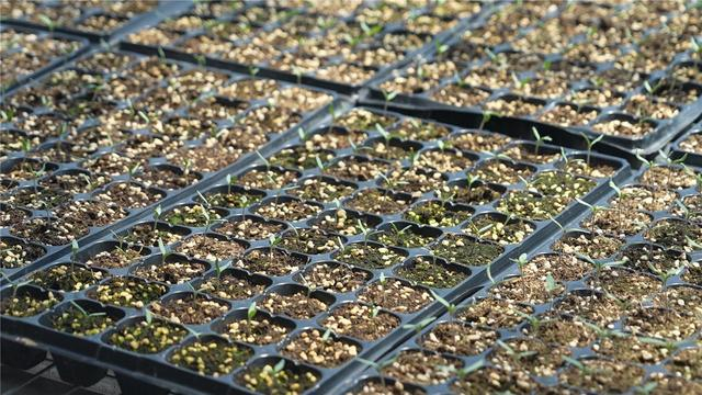 智能温室大棚内培育的柿子苗。