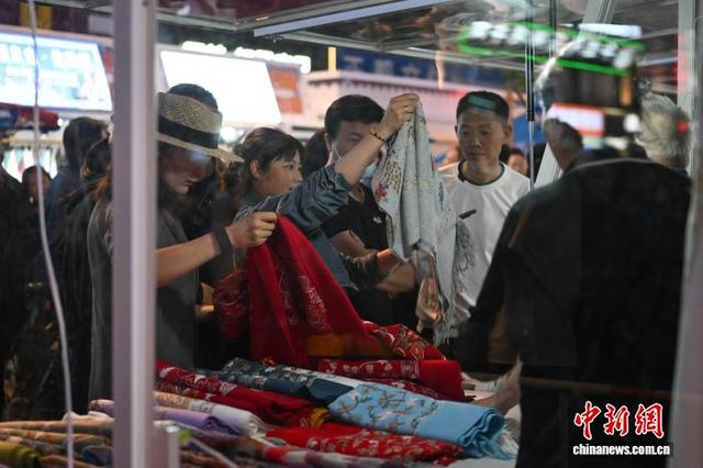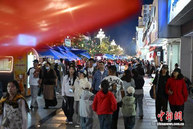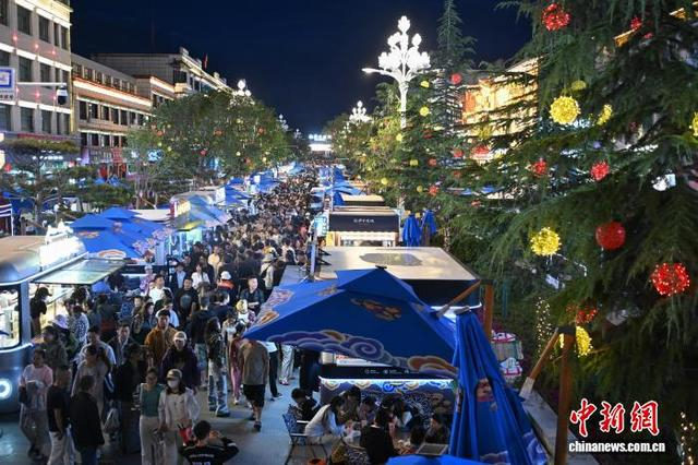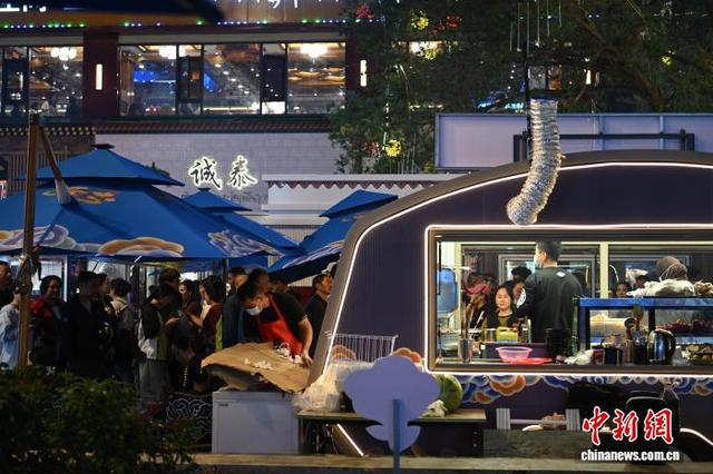 自7月15日开街以来,西藏自治区拉萨市城关区宇拓路370米长的“不夜城”迅速蹿红,每晚吸引近万名游客与市民。改造后的街区内,集装箱艺术区、霓虹餐车矩阵错落有致,169个摊位热闹非凡。藏式牦牛肉烧烤、青稞美食等摊位前排起长队,唐卡、藏香等文创产品人气高涨。游客在此既能大快朵颐,也能沉浸式体验藏地文化,“拉萨不夜城”正点亮高原夏夜,成为展示拉萨魅力的新窗口。中新社记者 贡嘎来松 摄
