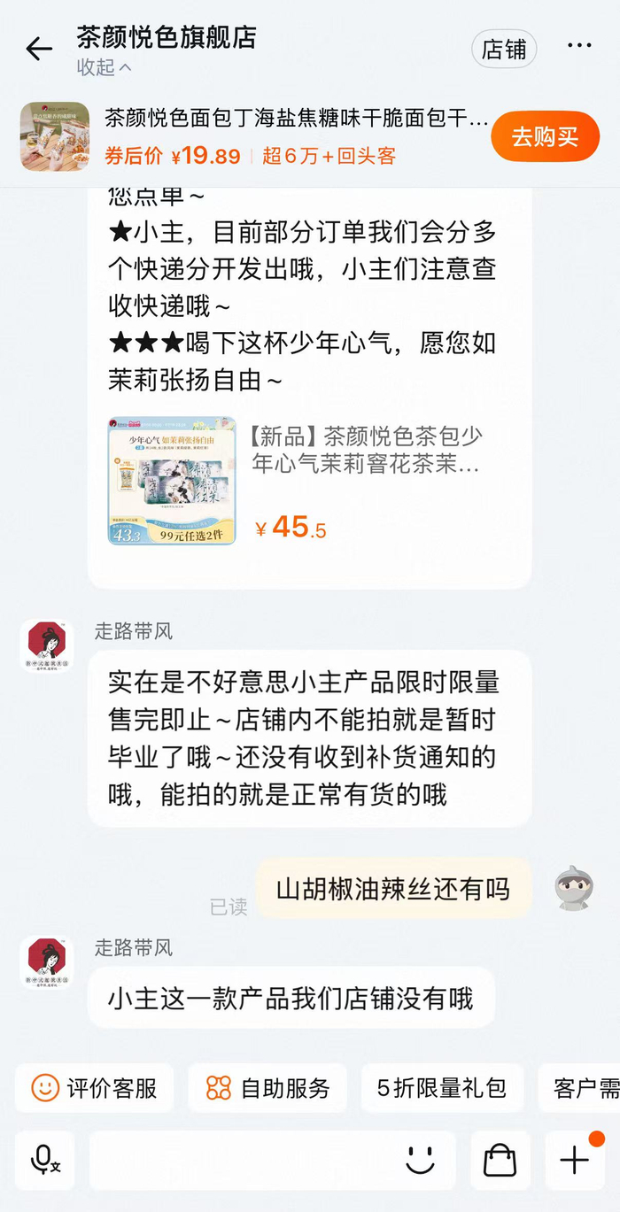 7月18日,界面新闻在茶颜悦色官方旗舰店查询时发现,店铺中已无涉事产品。茶颜悦色客服人员表示,这一款产品店铺没有。