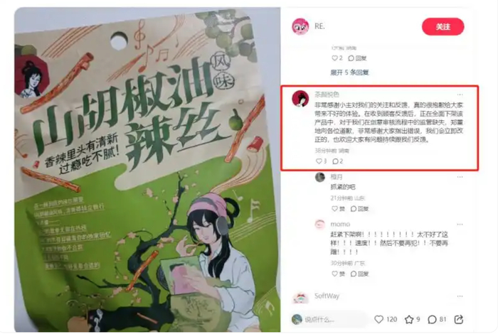 7月17日下午,茶颜悦色在社交平台上留言称,“非常感谢小主的关注和反馈,真的很抱歉给大家带来不好的体验,在收到顾客反馈后,正在全面下架该产品中,对于我们在创意审核流程中的监管缺失,郑重地向各位道歉,非常感谢大家指出错误,我们会立即改正的,也欢迎大家有问题持续跟我们反馈。”