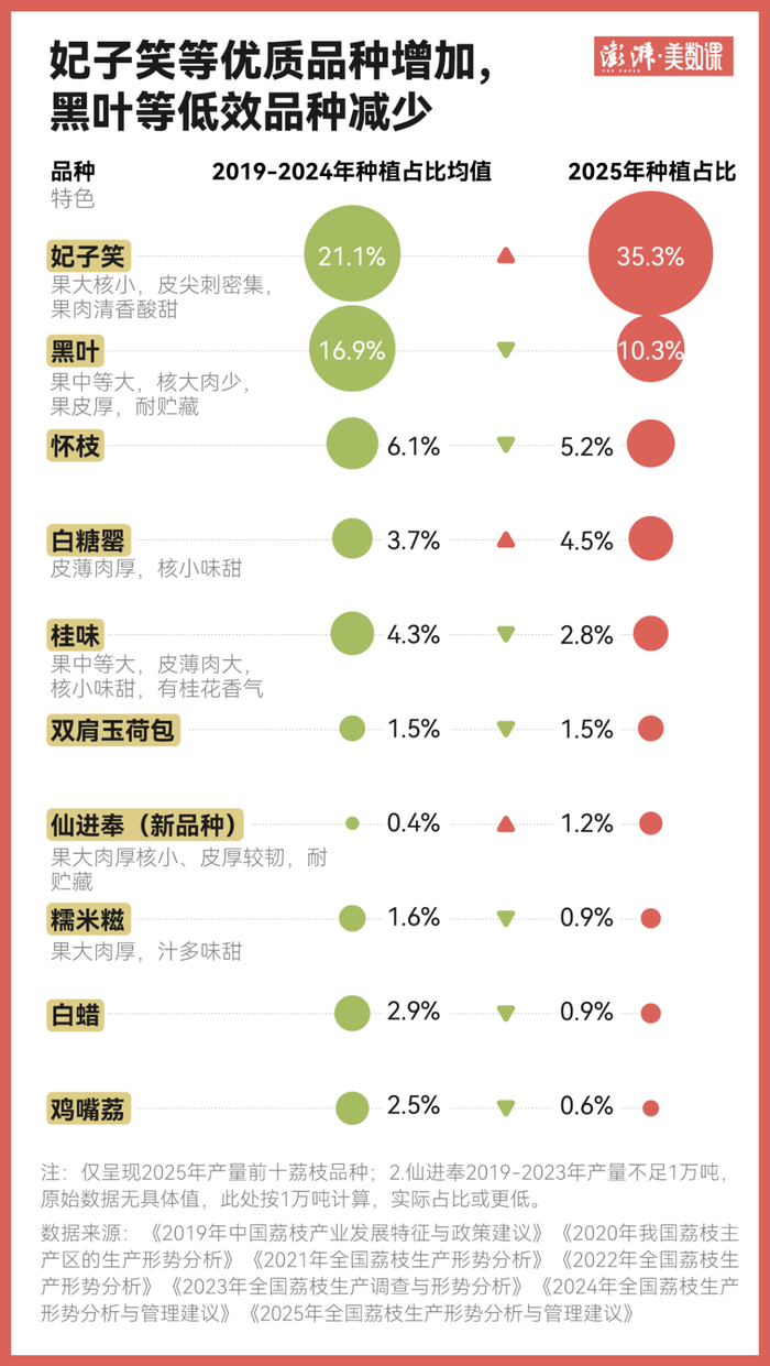 如今,不少荔枝产地,将部分黑叶改为妃子笑、白糖罂、仙进奉等更优质的品种。