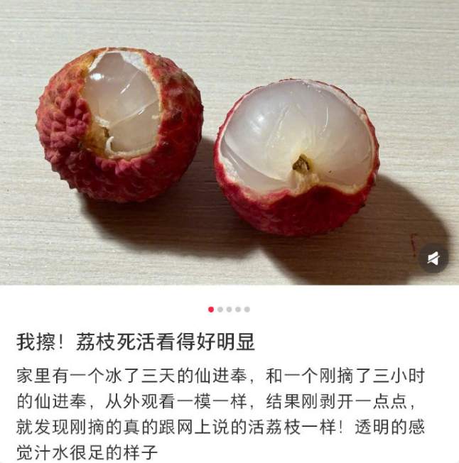 来自两广地区的网友,发帖晒出自己新鲜摘下的荔枝后,引发了大众热议。北方网友惊叹于新鲜的荔枝原来是透明的,自己吃的竟然是“磨砂款”荔枝。