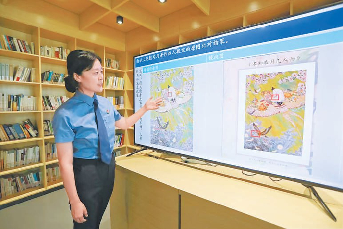 办理本市首例AI侵犯著作权案的仇怡然检察官在分析涉案图片。