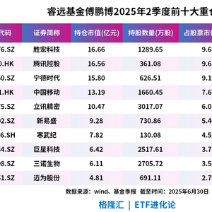 继一季度大手笔买入寒武纪后,傅鹏博二季度盯上了新易盛,二季度末持有730.86万股,持仓市值达9.28亿元,新进其第六大重仓股。