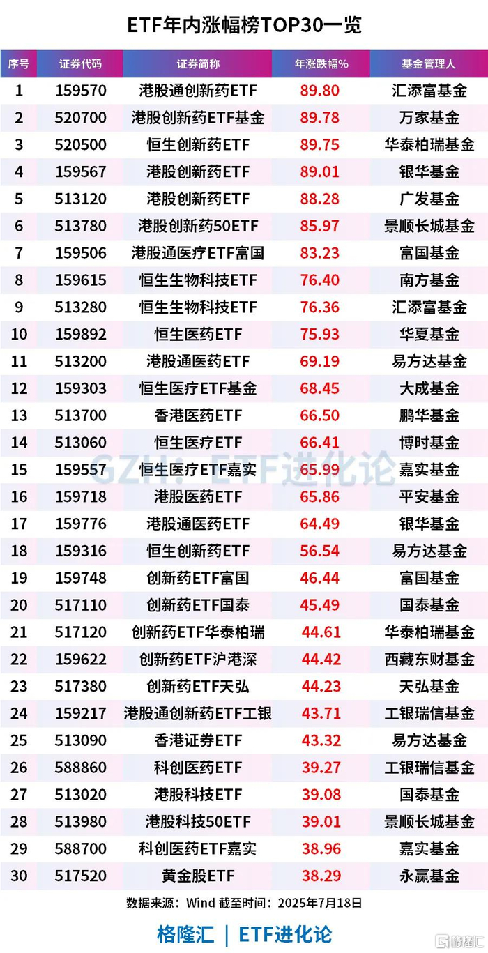 本轮创新药暴涨行情中,多只创新药相关ETF今年涨幅超80%,最高涨幅89.8%。