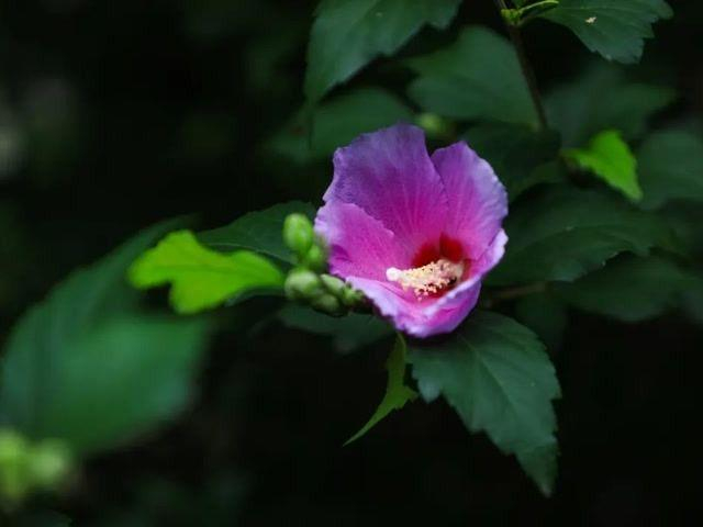 在蝉鸣四起的七月,木槿装扮上粉紫色的罗裙,为灼热的长夏添一抹清凉。虽朝开暮落,却充满了日新之美!
