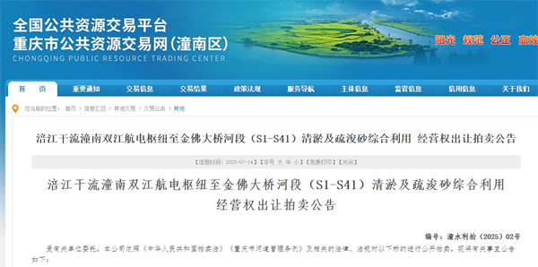 54.2-86.9元/方!重庆2宗清淤疏浚砂综合利用权拍卖