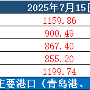 截至7月15日,新华·山东港口铁矿石进港指数报1236.77点,较7月8日上涨39.60点,涨幅3.31%;新华·山东港口铁矿石出港指数报1205.68点,较7月8日上涨100.34点,涨幅9.08%。