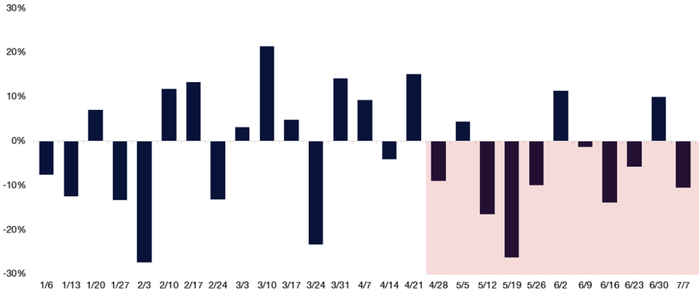 2. Citadel Securities的散户交易流在过去13周中有11周是净买入(自4月初以来)。
