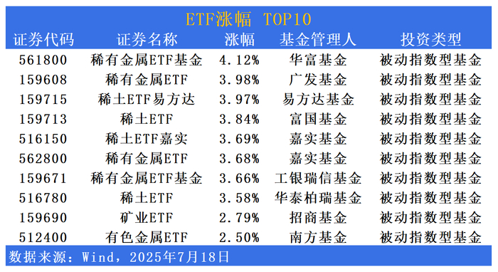 ETF市场日报 | 稀有金属板块领涨!下周一将有4只ETF开始募集