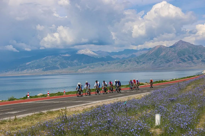 5月31日至6月4日,中国新疆第十七届环赛里木湖(国际)公路自行车赛暨中国自行车运动骑游大会在博州举行。图为第五赛段一景。博尔塔拉融媒体中心记者 于苏甫·艾尼摄