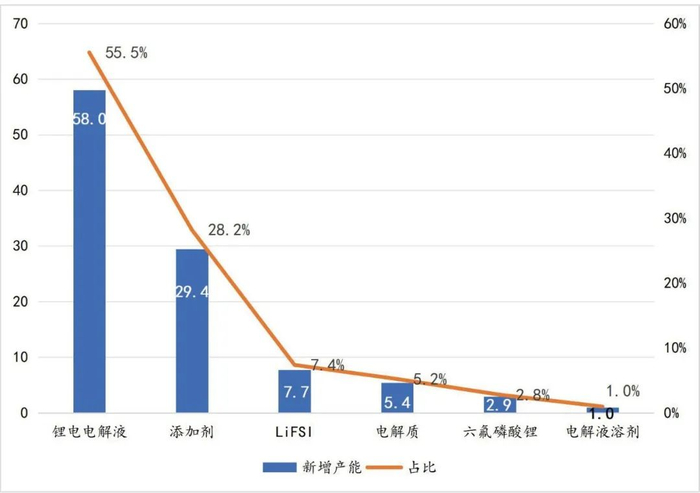 广东省电池行业协会产业研究中心统计数据显示,2025上半年电解液新增产能58万吨,添加剂29.4万吨,LiFSI7.7万吨,电解质5.4万吨,六氟磷酸锂2.9万吨和溶剂1万吨。