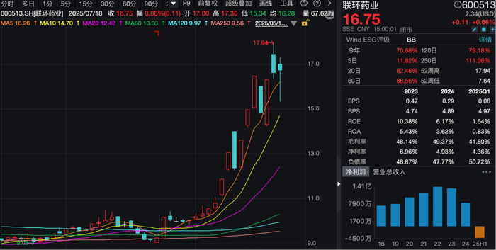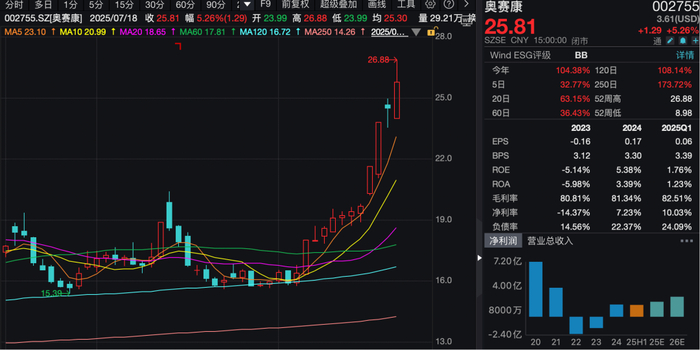此外,医药上市公司近来频频预告2025年上半年业绩大幅预增。亚太药业预计中报净利润最高增长超19倍,翰宇药业最高预增超16倍,特一药业最高预增超13倍,贤丰控股、能特科技、兄弟科技等26股预增上限也超过100%。
