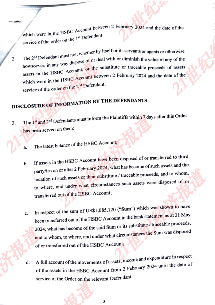 同时要求三名原告提供账户的最新余额、2024年2月2日后的资产转移记录(包括去向、接收方及原因)、针对2024年5月31日账户中转出的108.512万美元的具体流向、账户自2024年2月2日起的全部收支明细等信息。