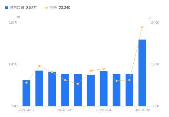 近一年(2024年7月10日至2025年7月10日),泰和科技A股股东户数从1.41万户,增加至2.52万户,增幅78.09%,区间股价上涨57.78%。