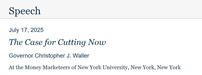 作为引人瞩目的进展,美联储官网周四盘后刊出理事沃勒本周在纽约大学的演讲稿,题目就叫“现在降息的理由”。沃勒暗示,如果在两周后的议息会议上同事们坚持不降息,他将投出反对票。