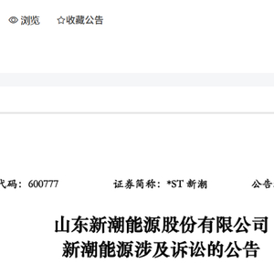 山东新潮能源股份有限公司(以下简称“公司”或“原告”)近日收到上海市黄浦区人民法院(以下简称“黄浦区人民法院”)的受理通知书((2025)沪0101民初21383号)。现将有关情况公告如下: