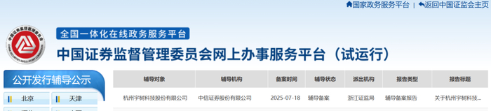 2025年7月18日,宇树科技正式启动A股IPO进程,开启上市辅导,由中信证券担任辅导机构,预计最快10月完成辅导,年内有望登陆A股。