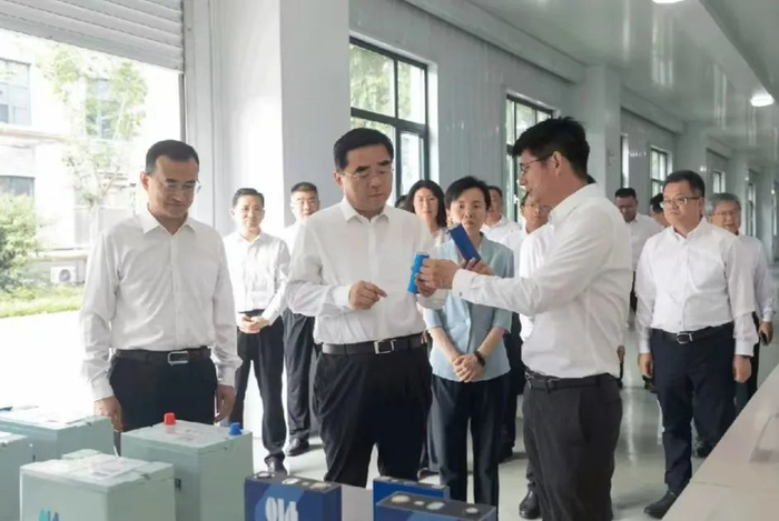 会前,满慎刚一行参观了肥城市蔚蓝科技产业园,现场调研了零壹肆公司产品研发制造情况。当前,山东重工集团正加快推进新能源战略转型,培育壮大新质生产力。肥城市主导的新型电池电极材料产业被列为山东省特色产业集群、国家级中小企业特色产业集群,具备完善的产业链配套和政策支持体系。作为产业龙头,山东零壹肆先进材料有限公司在钠离子电池领域拥有独创的普鲁士蓝基钠离子电池技术,具备领先的产业化能力。