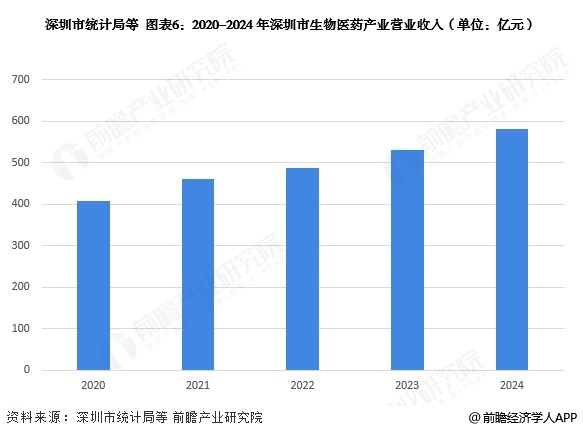 目前,深圳是国内生物医药产业最主要的集聚地之一,近年来,产业规模呈现逐步扩大的趋势、根据深圳市统计局等披露的数据显示,2023年深圳市生物医药产业总营收为530亿元;初步统计,2024年深圳市生物医药产业总营收达到580亿元。